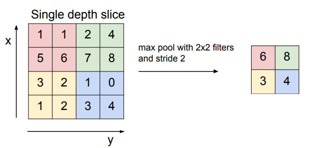 - 2x2, 3x3, stride=2 많이 씀