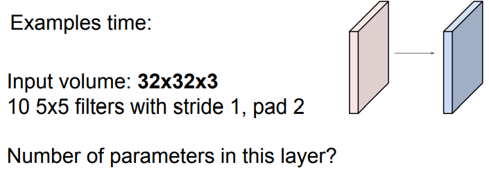 -> 필터당 5x5x3+1(bias)개의 파라미터 존재, 총 760개의 파라미터가 존재한다.