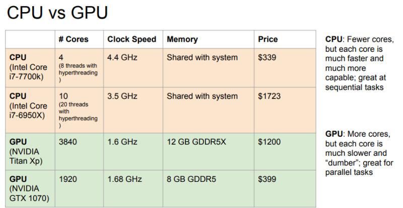 오늘은 실제 학습시에 사용하는 소프트웨어들에 대해 알아봅니다. 그전에 cpu와 gpu가 뭔지부터 알아보자.