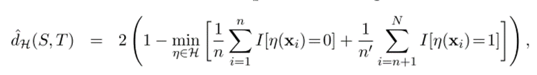 Also, they consider the symmetric difference hypothesis space to compute the empirical H-divergence between source and target domain. This divergence term can be considered as regularization, adding a domain adaptation term simultaneously to the objective of the network. Indiscriminate with respect to the shift between the domains can be achieved by making dh (S, T) to zero. This regularization Complete optimization objective is as below.