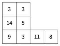 맨 왼쪽에 있는 어항을 2층에 쌓는다. fish=[[3,3,14,9,3,11,8],[5]] 와 같이 층을 나누어주었다.